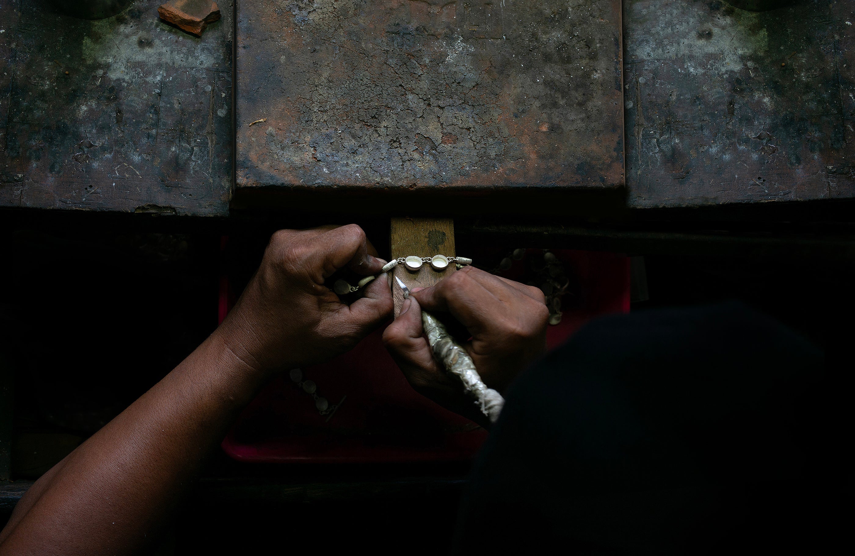 Welcome to our in-house workshop, where craftsmanship is our pride and each piece is a testament to meticulous attention. Our small team of seven individuals pour their passion into handcrafting each individual piece. Utilizing a meticulous procedure, we forge each silver granule during the hand fabrication process, establishing the foundation of our distinctive designs. The heart of our artistry lies in the time-consuming process. Several of our models demand more than a month of labor, underscoring the dedication to precision and patience invested in the creation of each individual piece. In the image displayed, you witness the careful and painstaking art of etching. With a sharp tool, every line is carved into the silver, and through oxidation, a texture is born. This process not only enhances depth and character of our pieces but also narrates the story of craftsmanship extending beyond the finished product.