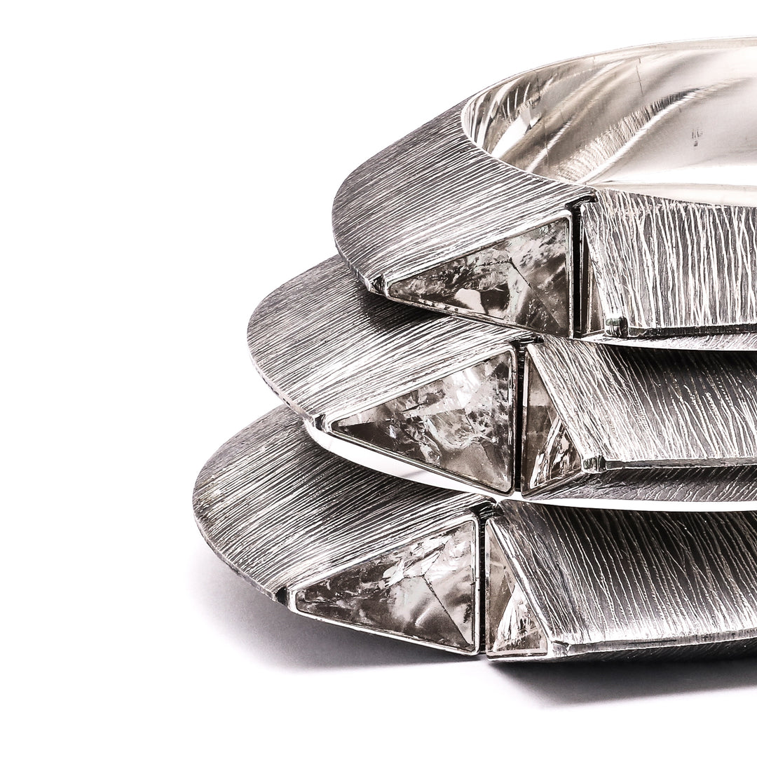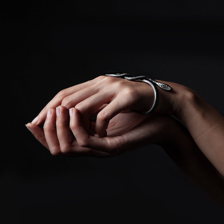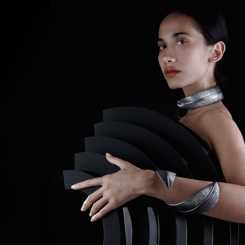 Welcome to our in-house workshop, where craftsmanship is our pride and each piece is a testament to meticulous attention. Our small team of seven individuals pour their passion into handcrafting each individual piece. Utilizing a meticulous procedure, we forge each silver granule during the hand fabrication process, establishing the foundation of our distinctive designs. The heart of our artistry lies in the time-consuming process. Several of our models demand more than a month of labor, underscoring the dedication to precision and patience invested in the creation of each individual piece. In the image displayed, you witness the careful and painstaking art of etching. With a sharp tool, every line is carved into the silver, and through oxidation, a texture is born. This process not only enhances depth and character of our pieces but also narrates the story of craftsmanship extending beyond the finished product.
