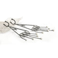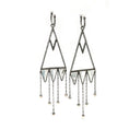 Rough-hewn rock crystals cased in etched and oxidized silver create capture points for hanging pearl raindrops.