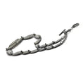 This necklace is reminiscent of a pair of rivers whose paths begin apart and eventually meet within a lake represented by the stone set in the centre piece.